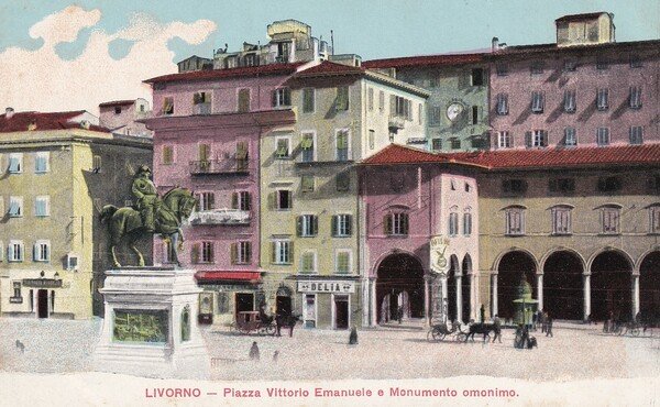 Cartolina LIVORNO - Piazza Vittorio Emanuele e Monumento omonimo.