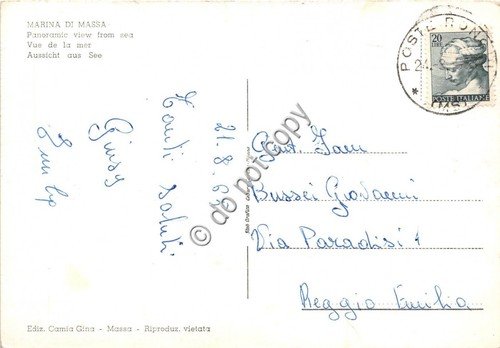 Cartolina Marina di Massa panorama dal mare barche a vela 1965