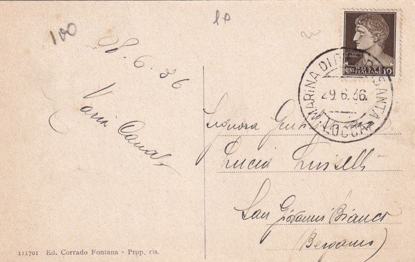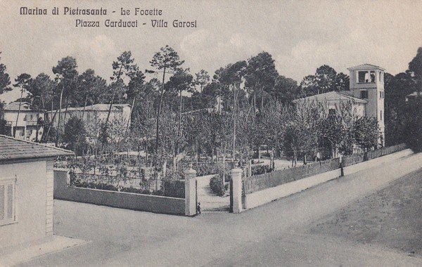Cartolina Marina di Pietrasanta (Lucca) - Le Focette - Piazza Carducci - Villa Garosi. 1936