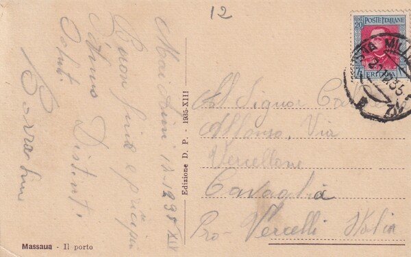 Cartolina Massaua - Il porto. 1935