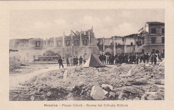 Cartolina MESSINA - Piazza Cairoli - Rovine del Collegio Militare (Terremoto di Messina 1908)