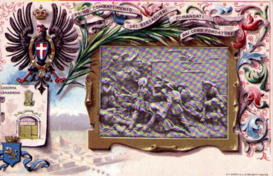 Cartolina Militare 1°Reggimento Bersaglieri "In ricordo del loro fondatore" 1911 Caserma La Marmora