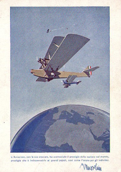 Cartolina Militare ARMA AERONAUTICA - Apparecchi Caproni ill.Ferrari 1930 (Mussolini/Fascismo)
