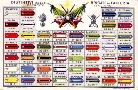 Cartolina Militare Reggimentale Distintivi delle Brigate Fanteria Esercito Italiano Primi'900
