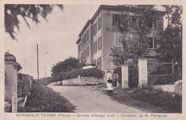 Cartolina MIRANDOLO TERME (Pavia) - Grande Albergo Lodi condotto da A. Panigada.