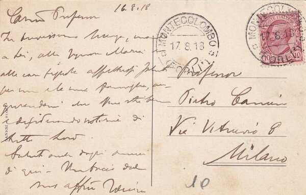 Cartolina Monte Colombo (Montecolombo - Rimini). 1918