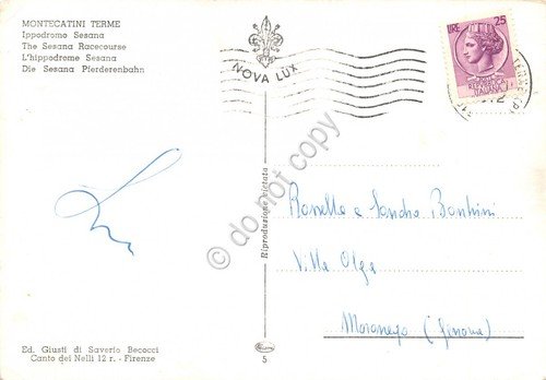 Cartolina Montecatini Terme Ippodromo Sesana Notturno bordi segnati