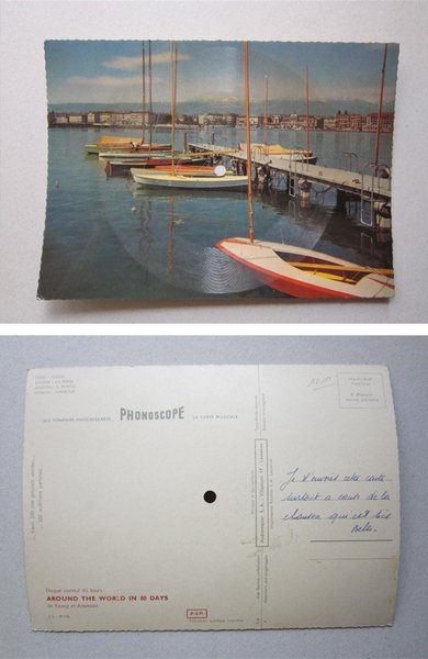 Cartolina musicale Disque 45 Tours "Ginevra il Porto - Around the World in 80 Day de Young et Adamson" Phonoscope