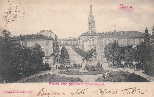 Cartolina NOVARA - Piazzale della Stazione e Corso Garibaldi. 1901