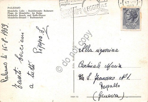 Cartolina Palermo Mandello Lido Stabilimento balneare 1959