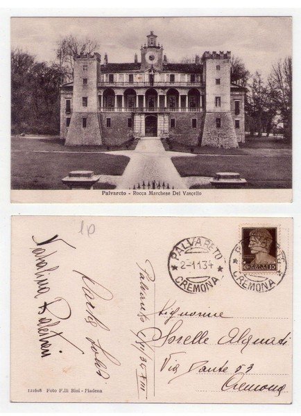 Cartolina PALVARETO (Cremona) Rocca Marchese Del Vascello. 1934