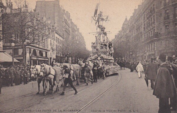 Cartolina Paris 1905 - Les fetes de la Mi-Careme. Char de la Ville de Paris.
