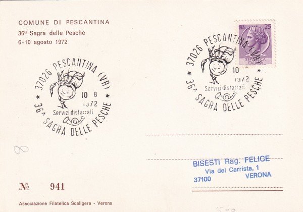 Cartolina PESCANTINA - Verona. 36° Sagra delle pesche. ill. L. Veronesi. 1972