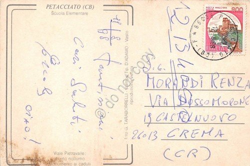 Cartolina Petacciato Campobasso 4 vedute scuola elem animata auto danneggiata