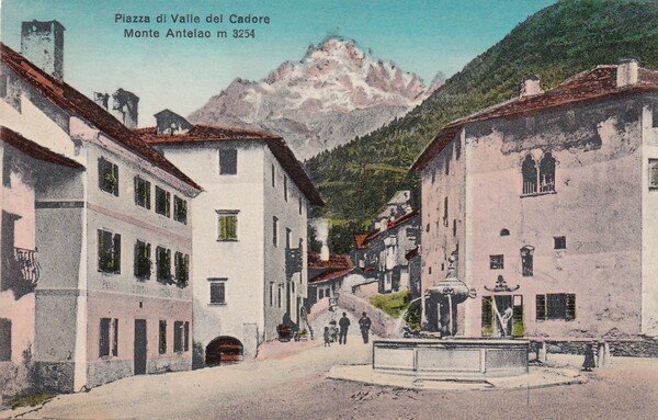 Cartolina Piazza di Valle del Cadore (Belluno) - Monte Antelao.