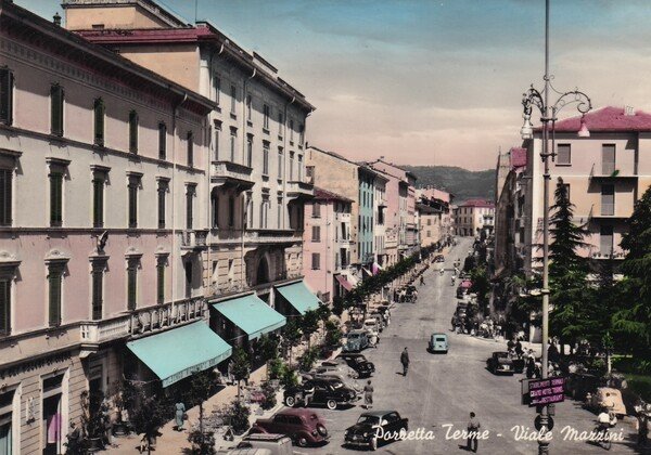 Cartolina Porretta Terme (Bologna) - Viale Mazzini. 1956