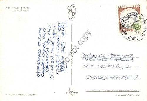 Cartolina Porto Rotondo Punta Nuraghe spiaggia 1987 (Sassari)