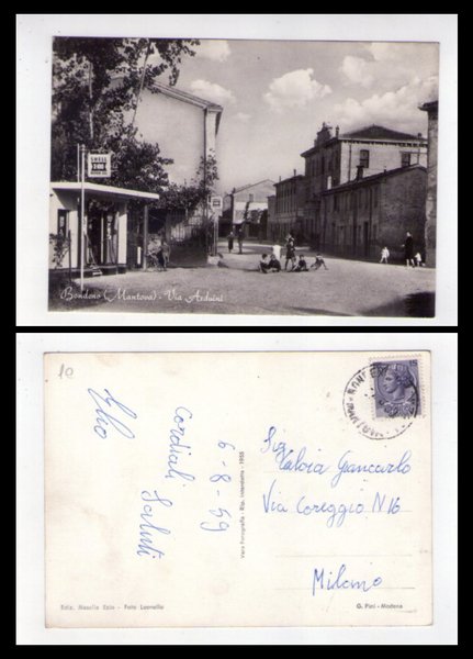 Cartolina / postcard Bondeno (Mantova) Via Arduini (bambini che giocano - distributore SHELL) 1959