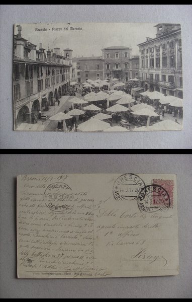 Cartolina / postcard BRESCIA - Piazza del Mercato 1917