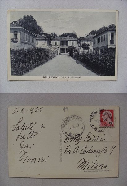 Cartolina / postcard Brusuglio (Milano) Villa A. Manzoni 1938