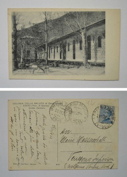 Cartolina / postcard Colonia della Salute di Carlo Arnaldi. USCIO (Prov. di Genova) - Corsia Centrale. 1922