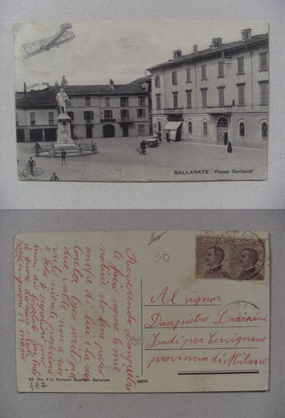 Cartolina / postcard GALLARATE (Varese) Piazza Garibaldi (biplano)