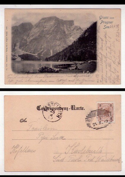 Cartolina/postcard Gruss vom Pragser See. Lago di Braies. 1899
