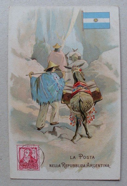 Cartolina/postcard "La Posta nella REPUBBLICA ARGENTINA" Lysoform - Achille Brioschi & C. MILANO. 1908