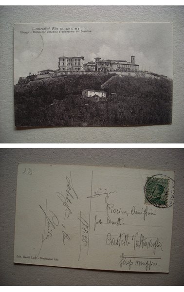 Cartolina / postcard Montecatini Alto (Pistoia) Albergo e Ristorante Paradiso e panorama del Carmine. 1925