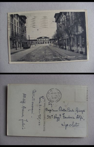 Cartolina / postcard PAVIA - Viale Stazione (tram) 1935