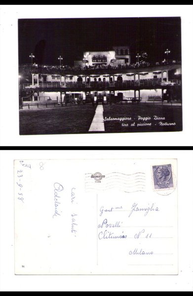 Cartolina / postcard Salsomaggiore (Parma) Poggio Diana tiro al piccione - Notturno. 1958