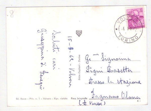 Cartolina/postcard Saluti da Volvera (Torino). 1962