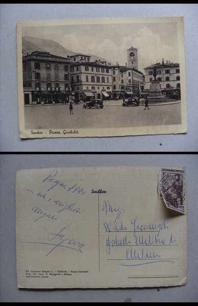 Cartolina / postcard SONDRIO - Piazza Garibaldi. Anni'50