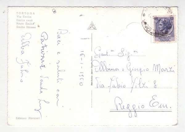 Cartolina/postcard Tortona (Alessandria) Via Emilia. 1960