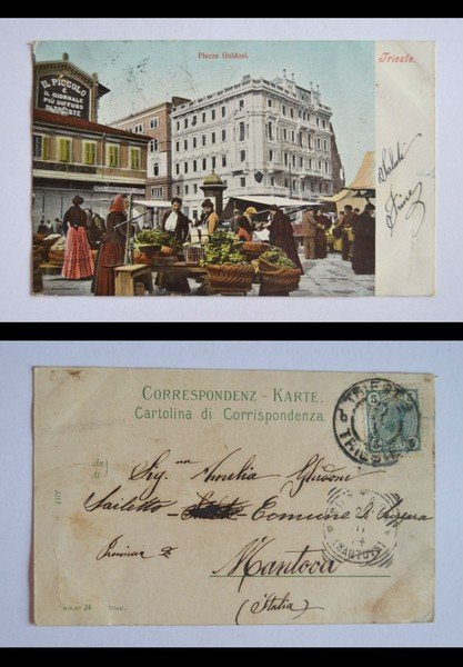 Cartolina / postcard TRIESTE - Piazza Goldoni. 1904. M.M.N°24