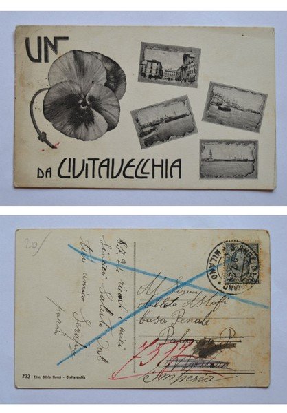 Cartolina / postcard Un (fiore / pensiero) da Civitavecchia (Roma) 1924