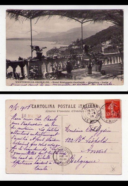 Cartolina / postcard VENTIMIGLIA - GRIMALDI (Imperia) Hotel Ristorante Garibaldi - Claudina - Italia. 1908