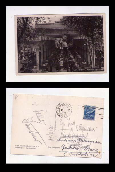 Cartolina / postcard Ventimiglia (Imperia) Mercato dei fiori. 1949