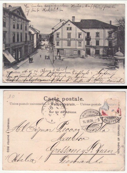 Cartolina/postcard Winterthur - Schaffhauserstrasse. Hotel Bierhalle Strauss. 1904