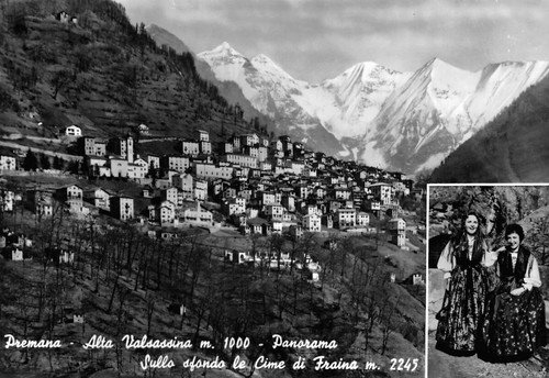Cartolina Premana Alta Valsassina Panorama abiti tradizionali