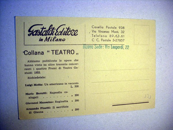 Cartolina Pubblicitaria GASTALDI EDITORE Milano Collana TEATRO. 1952