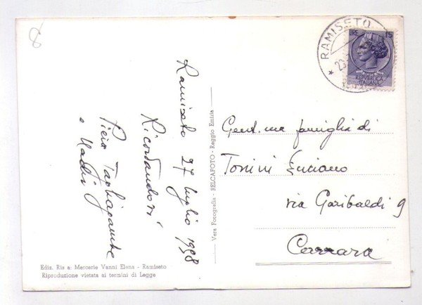 Cartolina Ramiseto (Reggio Emilia) - Centro. 1958