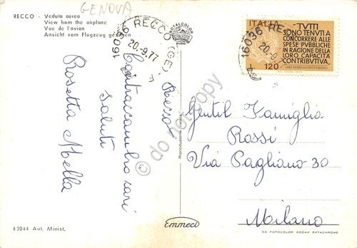 Cartolina Recco panorama aereo 1977 ferrovia strada case | Cartoline |