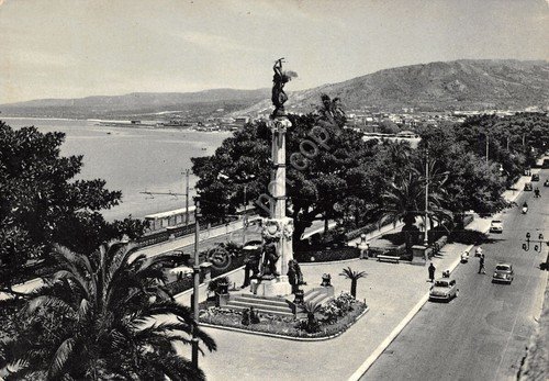 Cartolina Reggio Calabria Lungomare Monumento ai Caduti animata auto d'epoca