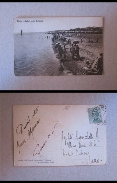 Cartolina RIMINI Veduta della Spiaggia. 1925. Ediz.Pericoli