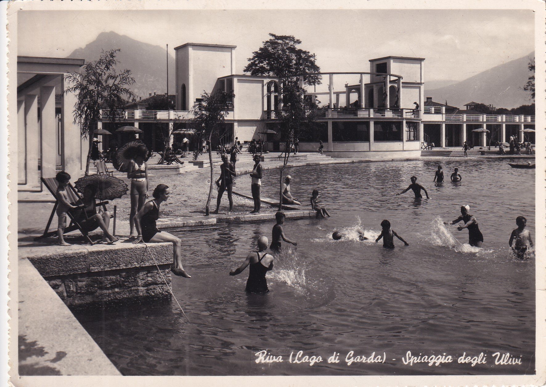 Cartolina RIVA (Lago di Garda) - Spiaggia degli Ulivi. 1950