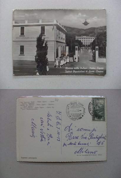 Cartolina Riviera delle Palme - PIETRA LIGURE. Istituti Ospedalieri di Santa Corona 1953