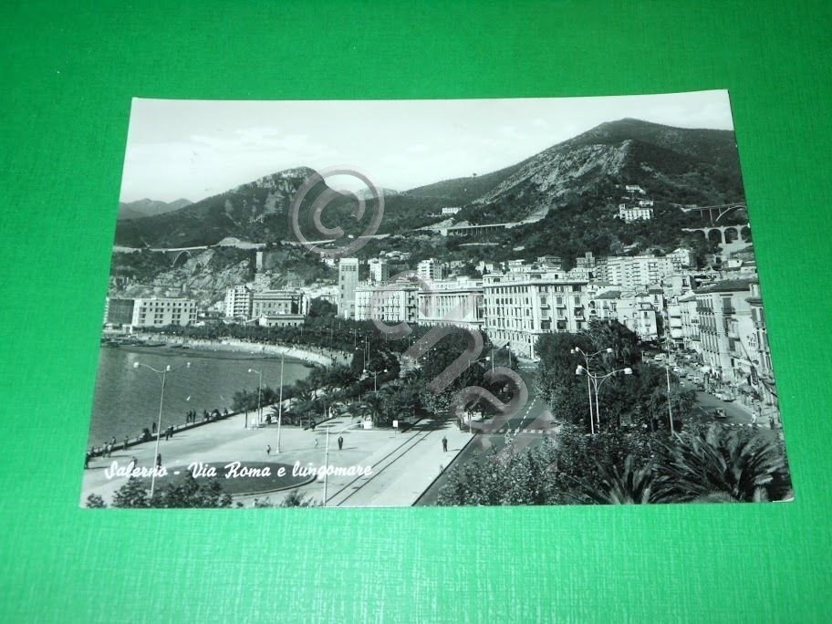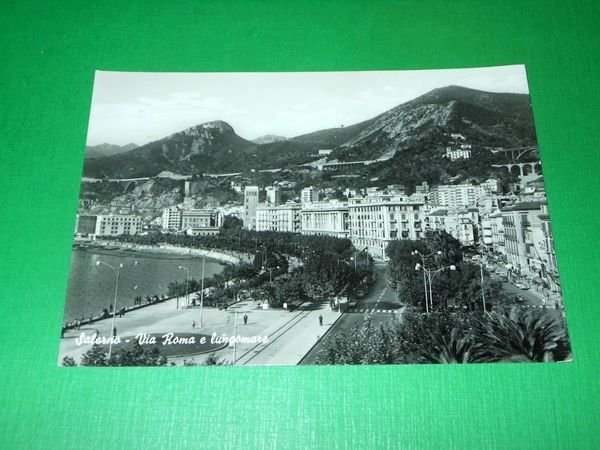 " *** Cartolina Salerno - Via Roma e Lungomare. La cartolina è viaggiata. Datata 1960. Formato grande. Per appassionati studiosi e collezionisti