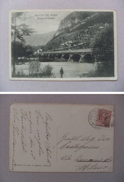 Cartolina Saluti da Arsiè (Belluno) - Ponte sul Cismon 1916