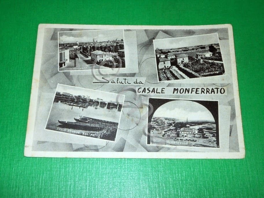 " *** Cartolina Saluti da Casale Monferrato - Vedute diverse. La cartolina è viaggiata. Datata 1955. Formato grande. Per appassionati, studiosi e collezionisti